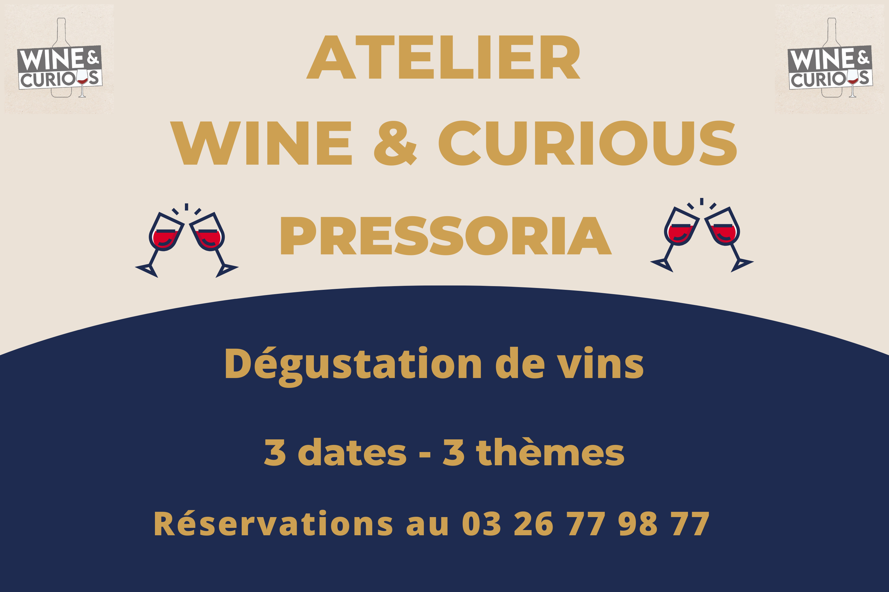 Dégustation incluant 3 verres de 10cL chacun. Visite de Pressoria au tarif préférentiel de 14€ en option.