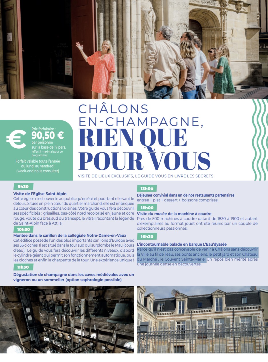 9h30 : Visite de l’église Saint-Alpin : Située en plein cœur du quartier marchand, elle est imbriquée au cœur des constructions voisines. Votre guide vous fera découvrir ses spécificités : grisailles, bas-côté nord recolorisé en jaune et ocre rouge, voûte du bras sud du transept, le vitrail racontant la légende de Saint-Alpin face à Attila.